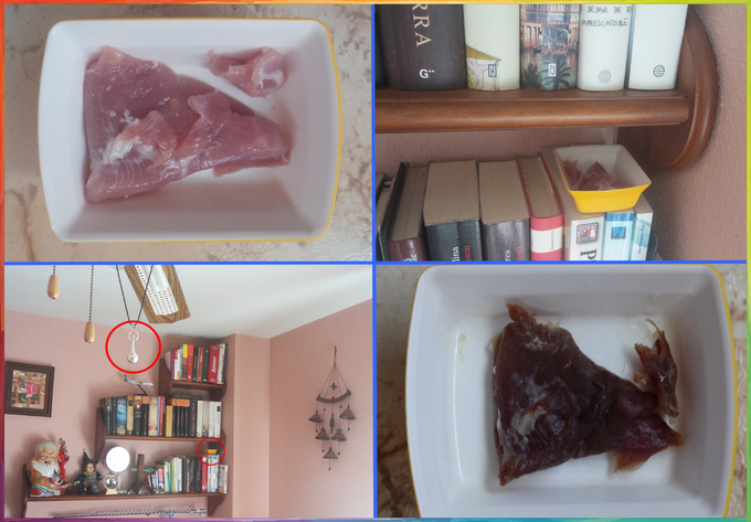 Dans ce cas, le test est effectué à l'intérieur d'une chambre, le connecteur est situé à 2 mètres du témoin, un morceau de viande maigre, l'émission à 2 mètres est de 18500 UB, le morceau de viande a été déshydraté sans odeur après avoir passé 5 ou 6 jours, une structure pyramidale est en couches avant l'efficacité de cet appareil et je ne connais aucun autre formé pour égaler ou dépasser cette expérience.