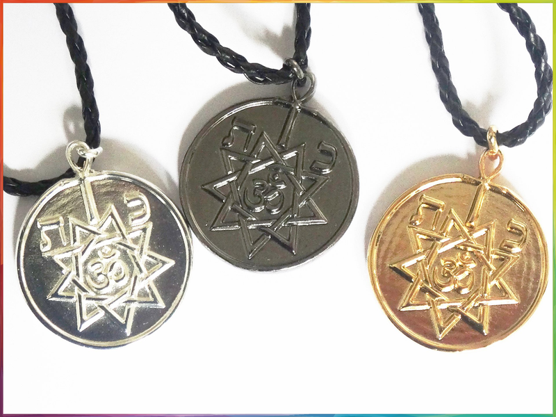 El diseño elegido personalmente por mí, consiste en una medalla circular de 33 mm. de diámetro, fabricada en zamak y bañada posteriormente en plata, oro o rutenio, en su parte superior lleva un Anj, la cruz ansada, como representación de la vida, visible en ambas caras, que además sirve como asa, en el reverso nos encontramos un nonagrama o estrella de nueve puntas, considerado por algunos como un símbolo de buena suerte que aporta progreso y estabilidad, en su centro encontramos el mantra OM, el sonido de Dios, que aúna lo físico y lo espiritual. Sobre la estrella, encontramos dos letras del alfabeto hebreo: TAV y CAF, como representación de la Luna y el Sol, además de otras atribuciones que conllevan. En el anverso, encontramos en la parte inferior una semilla de la flor de la vida, en representación de una única fuente como origen, en la parte superior 2 triquetas, el nudo celta de las tres esquinas, representando la triada, la unidad del 3, los tres reinos, tierra, mar y cielo; la unidad de lo físico, lo mental y lo espiritual; nacer, morir y renacer; sanación, bendición y evolución. Por último, en la parte central como foco de este talismán nos encontramos el Ojo de Horus, simbolizando la salud, la prosperidad, la indestructibilidad y la reencarnación.