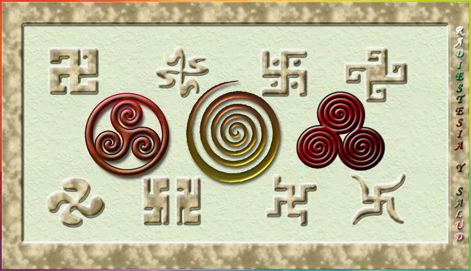 Para mí, estas figuras tienen un significativo trasfondo. Todas ellas son la representación de un vórtice energético. Las galaxias se asemejan a un enorme trisquel y el espacio entero gira en sentido inverso a las agujas del reloj. Los vórtices en levógiro penetran en la tierra y los que giran en dextrógiro emergen de la misma, es posible que por eso se asocie con la muerte el que penetra en la tierra y el que sale de la misma represente el resurgir o la vida.